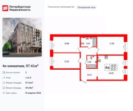 Уникальная, функциональная европланировка, большая кухня-гостиная 23.87 м², просторная прихожая 14.21 м². Общая площадь квартиры - 97.41 м², жилая 49.28 м², высота потолка 3 м.