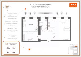 Квартира ждёт достойного покупателя, понимающего эксклюзивность объекта, принимающего место его расположения и влюблённого в Санкт-Петербург.