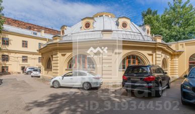 Во дворе низкое круглое здание с полукруглыми окнами и ребристым железобетонным куполом, окруженным легкой металлической решеткой, - это здание Выводного манежа, служившее ранее местом проведения аукционов по продаже лошадей, а теперь репетиционные залы Театра балета имени Леонида Якобсона.