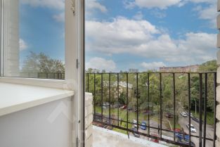 Большая комната 21м2, маленькая 14м2 с выходом на балкон, выходящий в зеленый тихий двор и кухня 9м2. В каждой комнате по 2 окна.