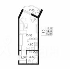 Метраж квартиры. В квартире - студии каждый квадратный метр на счету. И в этой квартире 24.3 квадратных метра, плюс лоджия.