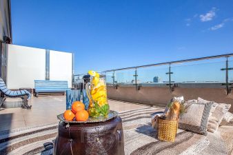 Пентхаус с высокими потолками и большой видовой террасой (вид на Неву и Большеохтинский мост).