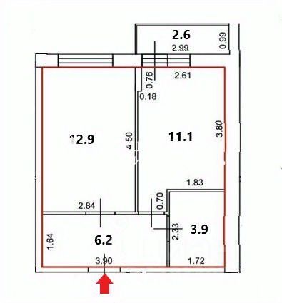 Площадь квартиры указана БЕЗ УЧЕТА балкона (2.6 м2)