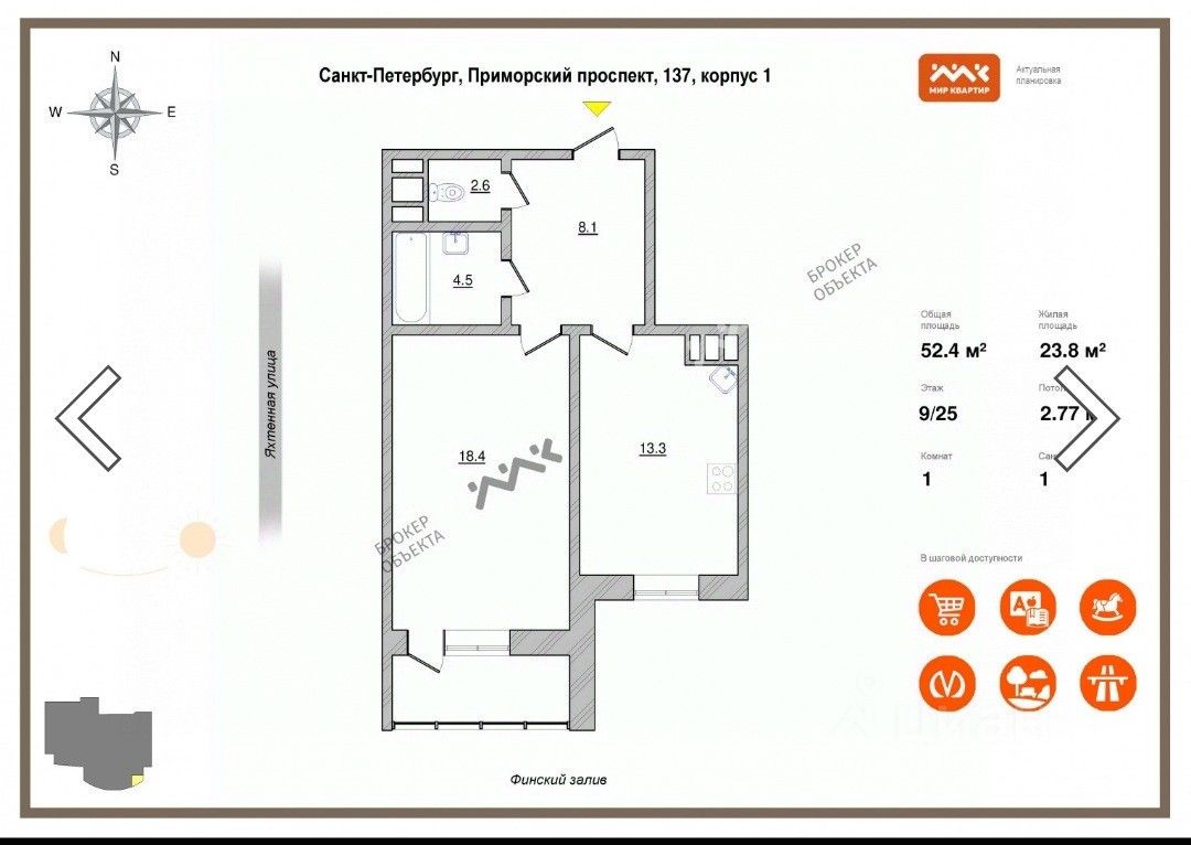 Квартира с потрясающим видом на финский залив и Газпром арену! Высокий 9-й этаж, позволяет любоваться великолепными видами. Квартира готова к проживанию, выполнен качественный ремонт.