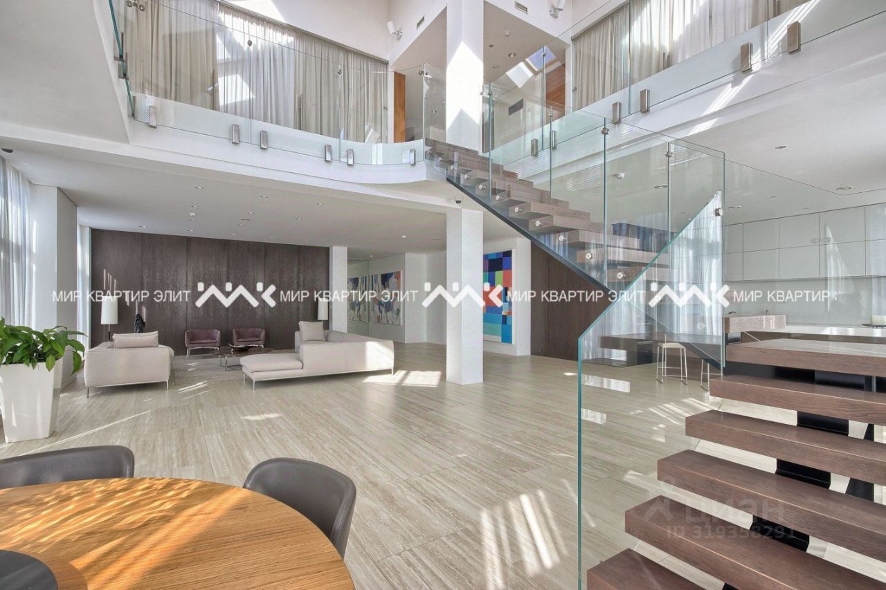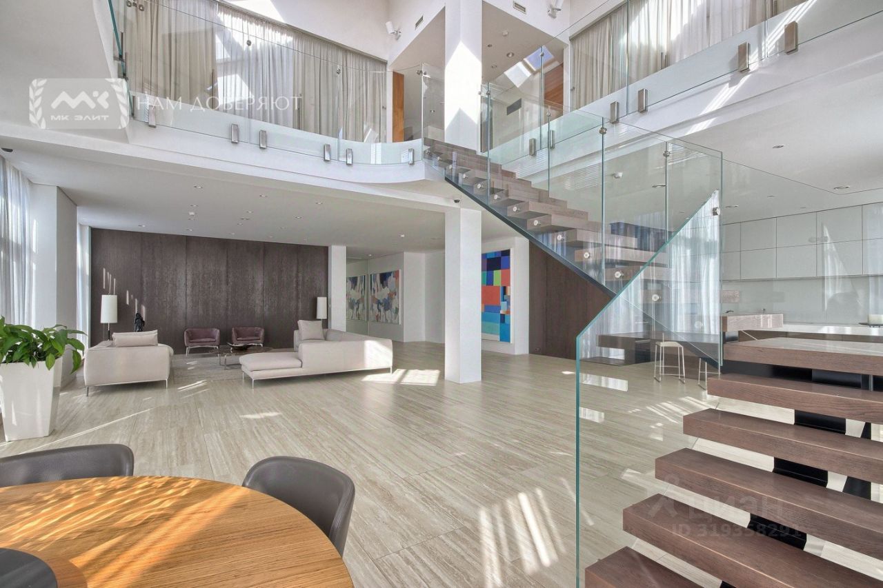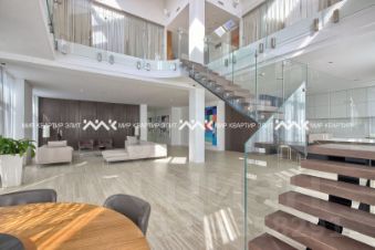 Шикарная пятикомнатная квартира занимает сразу 2 уровня. Повсюду красуются панорамные окна, а высота потолков — от 4 до 10 метров. Все окна пентхауса открывают вид на полный путь солнца от рассвета до заката. Внутри постоянно можно наслаждаться движением солнечного света. Планировка обоих уровней идеально подходит для комфортной жизни современной семьи, этот пентхаус станет отличным вложением в будущее детей, может стать драгоценным достоянием родового гнезда.