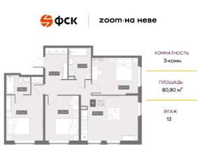 Цена со скидкой до 30% в прямой продаже от застройщика — только в этом месяце. При покупке апартаментов - паркинг за полцены. На все апартаменты действует беспроцентная рассрочка. Купите на распродаже! Покупка недвижимости в Zoom на Неве сейчас со скидкой до 30% позволит через 2 года получить доход до 6 300 000 руб. Роскошные виды на Неву. 3-к апартамент в комплексе класса бизнес-лайт Zoom на Неве на 13-м этаже. Общая площадь 80,8. Без отделки.