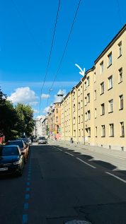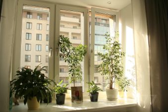 В первой студии с видом в тихий уютный двор: два больших окна, просторная гостиная с диваном и телевизором. Выделенное рабочее пространство и спальня с большими шкафами-купе для хранения. Есть посудомойка Bosch.