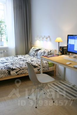 В студии с видом на улицу Малая Монетная: большое солнечное окно, ориентированное на юго-запад, обособленная зона кухни-столовой. рабочее место и зона отдыха с кроватью.