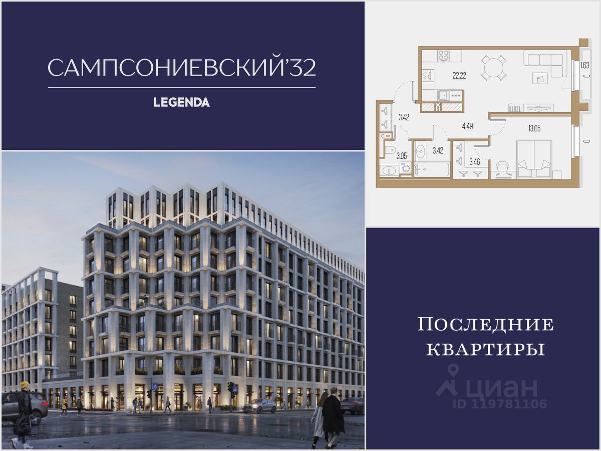 Квартира с одной спальней в комплексе "Сампсониевский 32" от LEGENDA на 7 этаже.