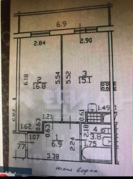 + общая площадь 42,6 кв.м.+ лоджия 6,9 кв.м. (49,5 кв.м.);