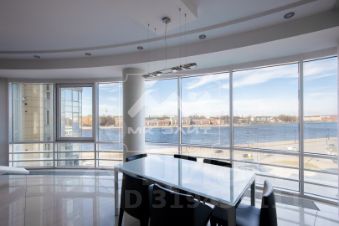 Из ее окон, выходящих на набережную, открывается неповторимый вид на панораму города, на перспективу и изгиб реки Невы.
