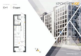 Продаётся студия в строящемся доме (Дом 1), срок сдачи: I-кв. 2027, общей площадью 26.1 кв.м., на 5 этаже. Кронунг ЮГ - жилой дом комфорт-класса в тихом уютном районе на берегу реки Дудергофки. Невысокая этажность, современная архитектура, закрытый двор с площадками для игр и отдыха.