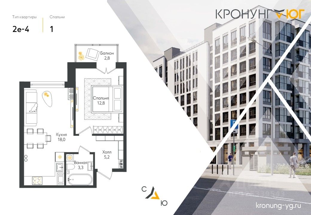 Продаётся 1-комнатная квартира в строящемся доме (Дом 1), срок сдачи: I-кв. 2027, общей площадью 40.2 кв.м., на 7 этаже. Кронунг ЮГ - жилой дом комфорт-класса в тихом уютном районе на берегу реки Дудергофки. Невысокая этажность, современная архитектура, закрытый двор с площадками для игр и отдыха.