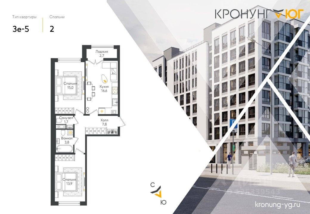 Продаётся 2-комнатная квартира в строящемся доме (Дом 1), срок сдачи: I-кв. 2027, общей площадью 60.2 кв.м., на 7 этаже. Кронунг ЮГ - жилой дом комфорт-класса в тихом уютном районе на берегу реки Дудергофки. Невысокая этажность, современная архитектура, закрытый двор с площадками для игр и отдыха.