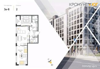 Продаётся 2-комнатная квартира в строящемся доме (Дом 1), срок сдачи: I-кв. 2027, общей площадью 70.6 кв.м., на 2 этаже. Кронунг ЮГ - жилой дом комфорт-класса в тихом уютном районе на берегу реки Дудергофки. Невысокая этажность, современная архитектура, закрытый двор с площадками для игр и отдыха.
