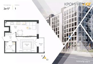 Продаётся 1-комнатная квартира в строящемся доме (Дом 1), срок сдачи: I-кв. 2027, общей площадью 39.1 кв.м., на 2 этаже. Кронунг ЮГ - жилой дом комфорт-класса в тихом уютном районе на берегу реки Дудергофки. Невысокая этажность, современная архитектура, закрытый двор с площадками для игр и отдыха.