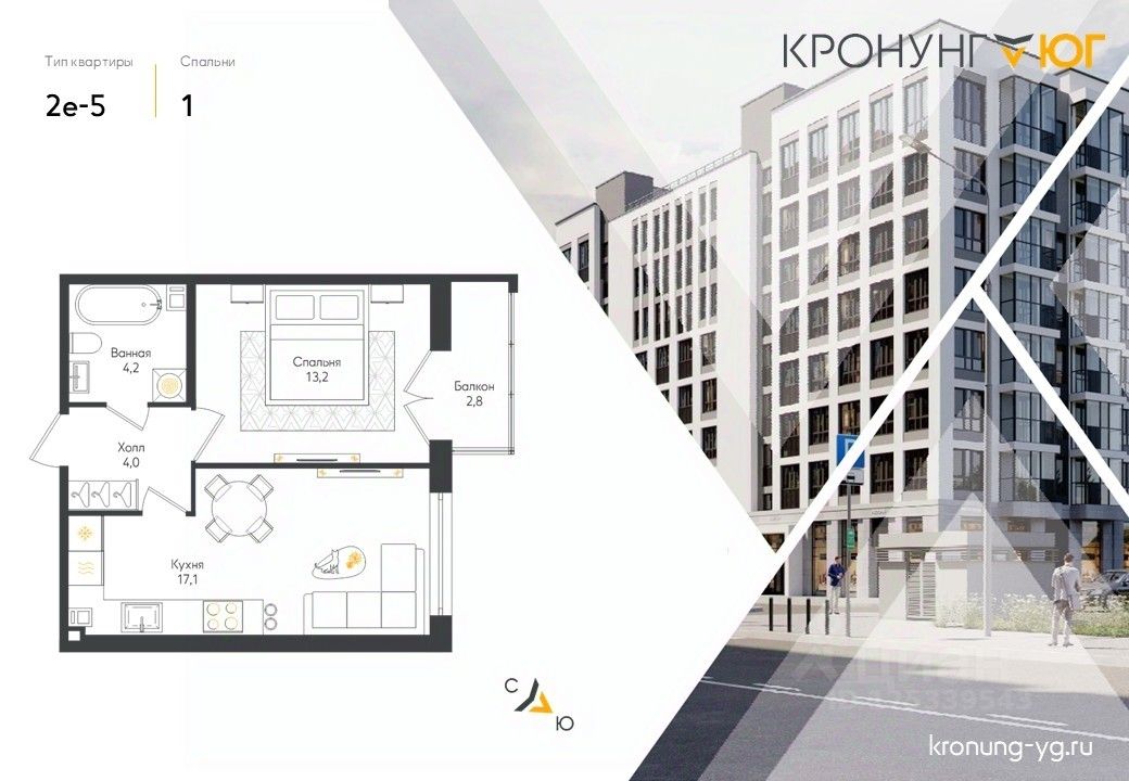 Продаётся 1-комнатная квартира в строящемся доме (Дом 1), срок сдачи: I-кв. 2027, общей площадью 39.7 кв.м., на 2 этаже. Кронунг ЮГ - жилой дом комфорт-класса в тихом уютном районе на берегу реки Дудергофки. Невысокая этажность, современная архитектура, закрытый двор с площадками для игр и отдыха.