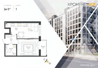 Продаётся 1-комнатная квартира в строящемся доме (Дом 1), срок сдачи: I-кв. 2027, общей площадью 38.7 кв.м., на 5 этаже. Кронунг ЮГ - жилой дом комфорт-класса в тихом уютном районе на берегу реки Дудергофки. Невысокая этажность, современная архитектура, закрытый двор с площадками для игр и отдыха.