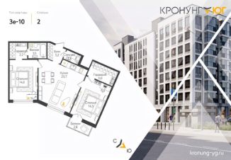Продаётся 2-комнатная квартира в строящемся доме (Дом 1), срок сдачи: I-кв. 2027, общей площадью 70.1 кв.м., на 2 этаже. Кронунг ЮГ - жилой дом комфорт-класса в тихом уютном районе на берегу реки Дудергофки. Невысокая этажность, современная архитектура, закрытый двор с площадками для игр и отдыха.