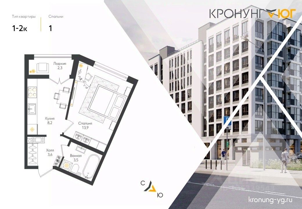 Продаётся 1-комнатная квартира в строящемся доме (Дом 1), срок сдачи: I-кв. 2027, общей площадью 30.4 кв.м., на 5 этаже. Кронунг ЮГ - жилой дом комфорт-класса в тихом уютном районе на берегу реки Дудергофки. Невысокая этажность, современная архитектура, закрытый двор с площадками для игр и отдыха.