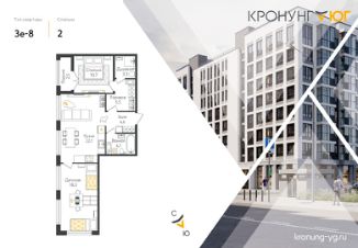 Продаётся 2-комнатная квартира в строящемся доме (Дом 1), срок сдачи: I-кв. 2027, общей площадью 69.9 кв.м., на 5 этаже. Кронунг ЮГ - жилой дом комфорт-класса в тихом уютном районе на берегу реки Дудергофки. Невысокая этажность, современная архитектура, закрытый двор с площадками для игр и отдыха.