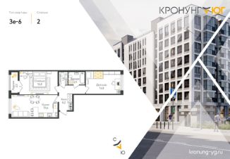 Продаётся 2-комнатная квартира в строящемся доме (Дом 1), срок сдачи: I-кв. 2027, общей площадью 65.2 кв.м., на 8 этаже. Кронунг ЮГ - жилой дом комфорт-класса в тихом уютном районе на берегу реки Дудергофки. Невысокая этажность, современная архитектура, закрытый двор с площадками для игр и отдыха.