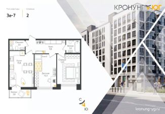Продаётся 2-комнатная квартира в строящемся доме (Дом 1), срок сдачи: I-кв. 2027, общей площадью 58.9 кв.м., на 5 этаже. Кронунг ЮГ - жилой дом комфорт-класса в тихом уютном районе на берегу реки Дудергофки. Невысокая этажность, современная архитектура, закрытый двор с площадками для игр и отдыха.