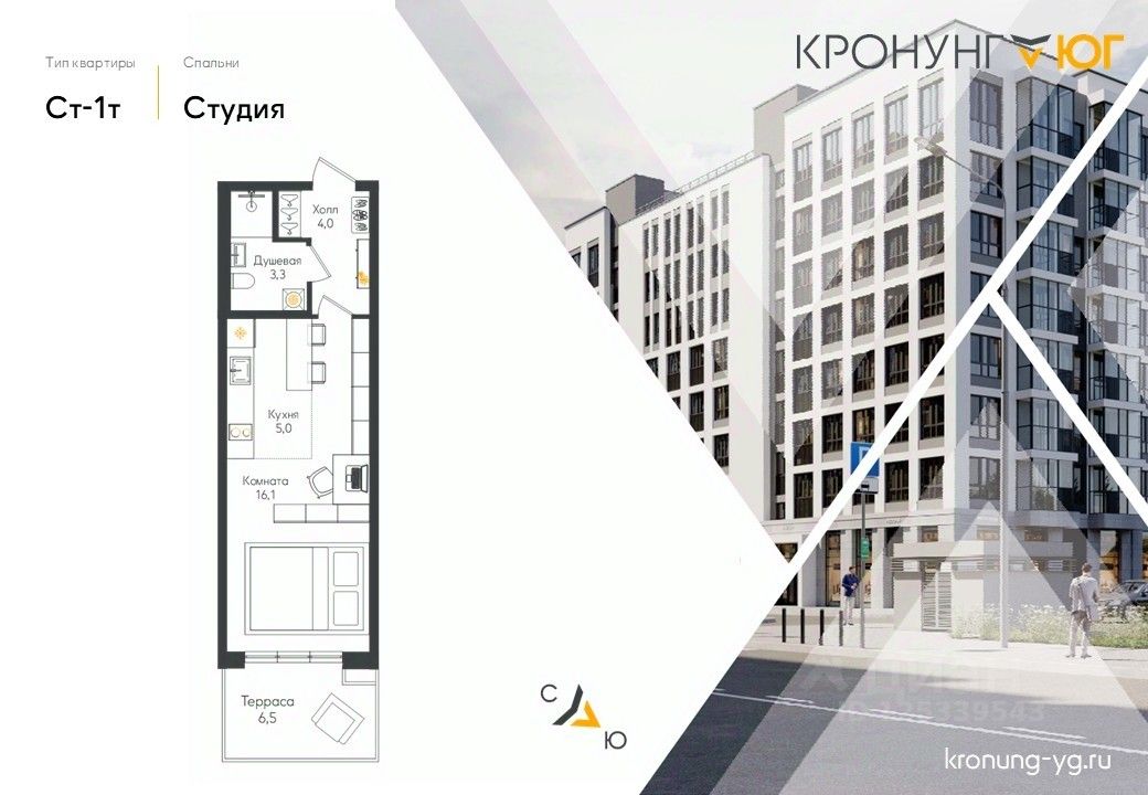 Продаётся студия в строящемся доме (Дом 1), срок сдачи: I-кв. 2027, общей площадью 30.4 кв.м., на 1 этаже. Кронунг ЮГ - жилой дом комфорт-класса в тихом уютном районе на берегу реки Дудергофки. Невысокая этажность, современная архитектура, закрытый двор с площадками для игр и отдыха.