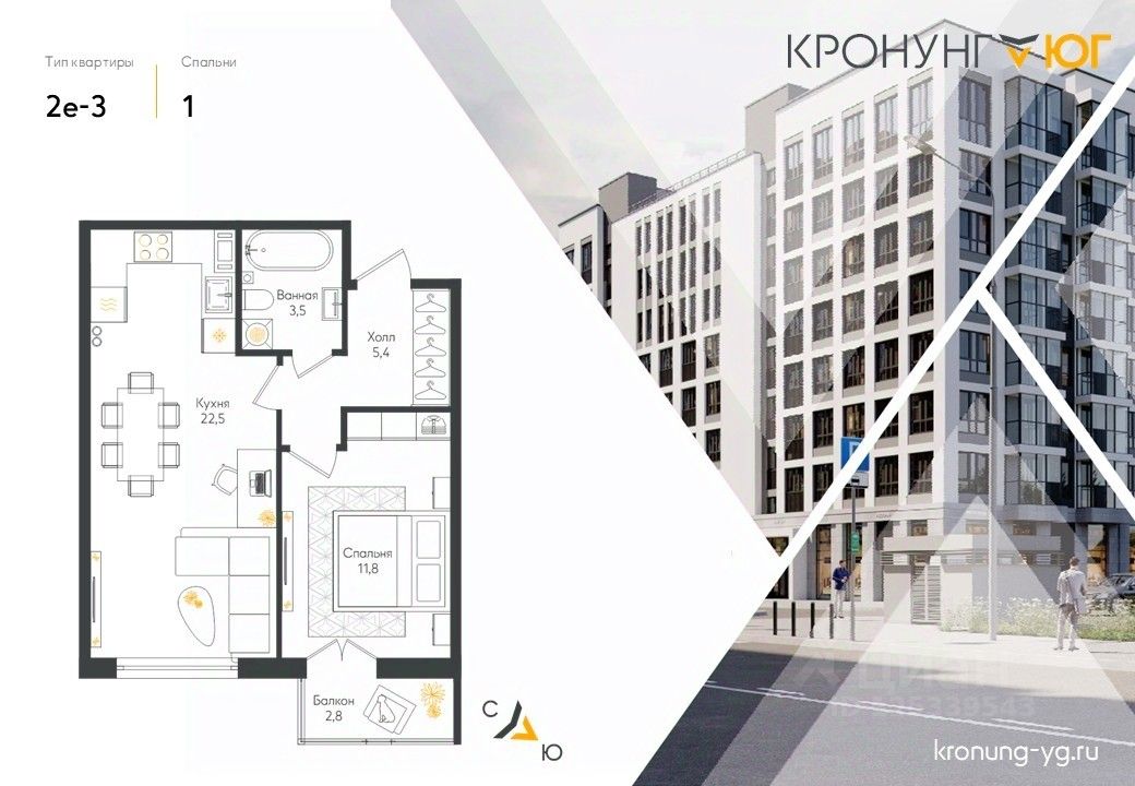 Продаётся 1-комнатная квартира в строящемся доме (Дом 1), срок сдачи: I-кв. 2027, общей площадью 44.1 кв.м., на 6 этаже. Кронунг ЮГ - жилой дом комфорт-класса в тихом уютном районе на берегу реки Дудергофки. Невысокая этажность, современная архитектура, закрытый двор с площадками для игр и отдыха.