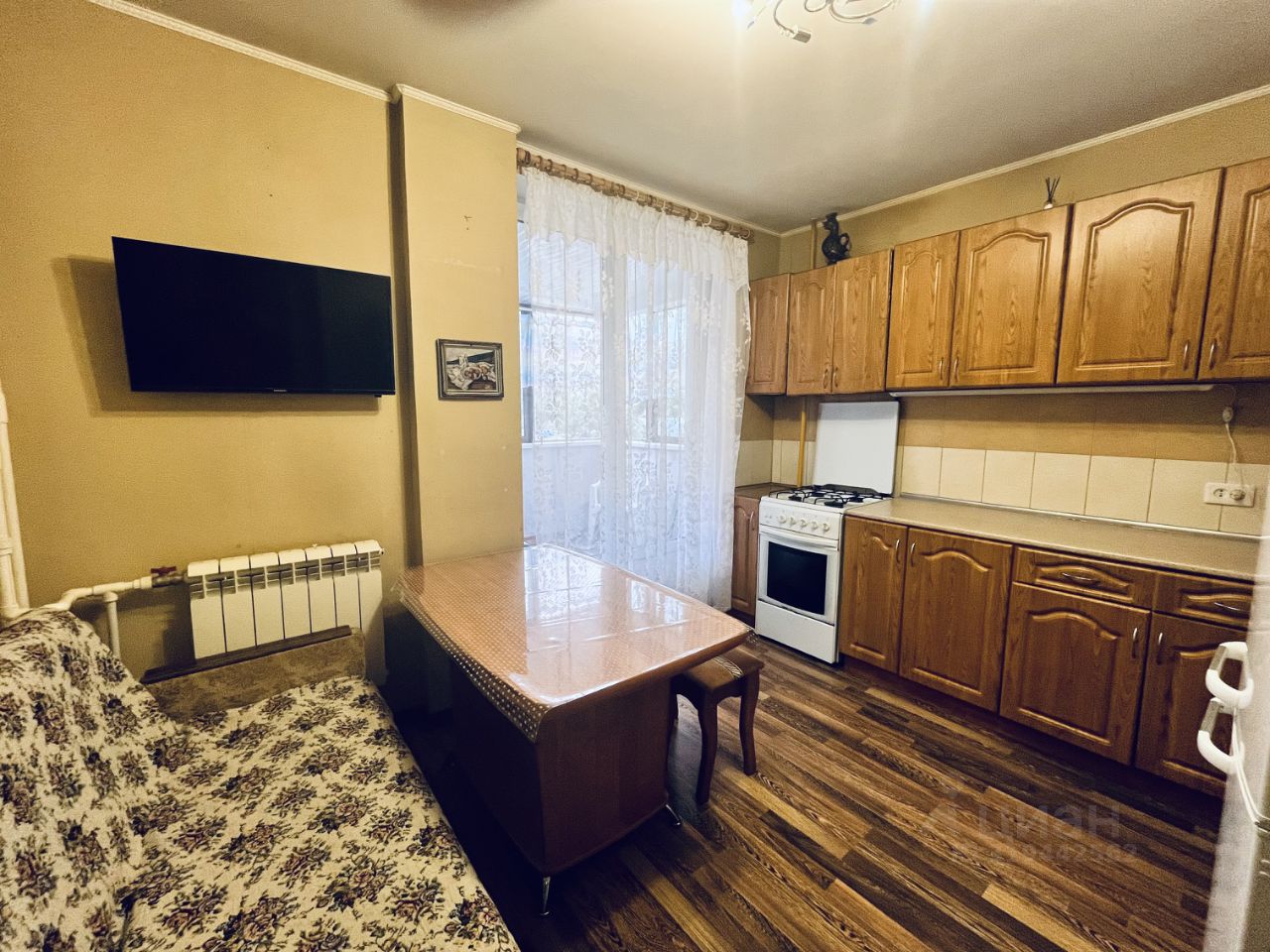 Квартира общей площадью 43,8 кв.м без учета балкона. Просторный и светлый балкон-терраса 6,8кв.м. Уютная кухня-гостиная 11,5 кв.м., Комната 22кв.м. Комфортный совмещенный санузел с теплыми полами. В коридоре плитка, во всей квартире качественный ламинат. В квартире остается вся мебель и техника: Холодильник, стиральная машина, бойлер, кровать, два больших шкафа, большой двухместный диван, кровать, кухонный гарнитур.