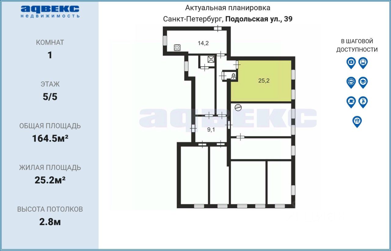 В комнате установлены стеклопакеты, полы крепкие, покрыты лаком. Окна выходят на зелёную аллею Малодетскосельского проспекта.