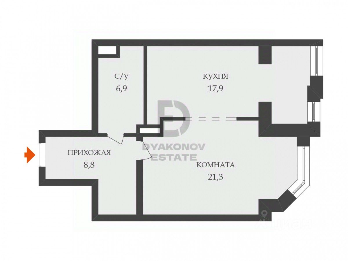 В ПРЯМОЙ продаже большая 1-комнатная квартира со свободной планировкой в престижном доме!