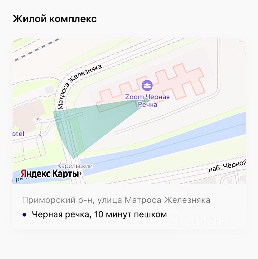 • Всего в 10 минутах расположен выезд на ЗСД, Крестовский остров и Парк 300-летия. Метро Черная речка находится в 5-7 минутах пешком.