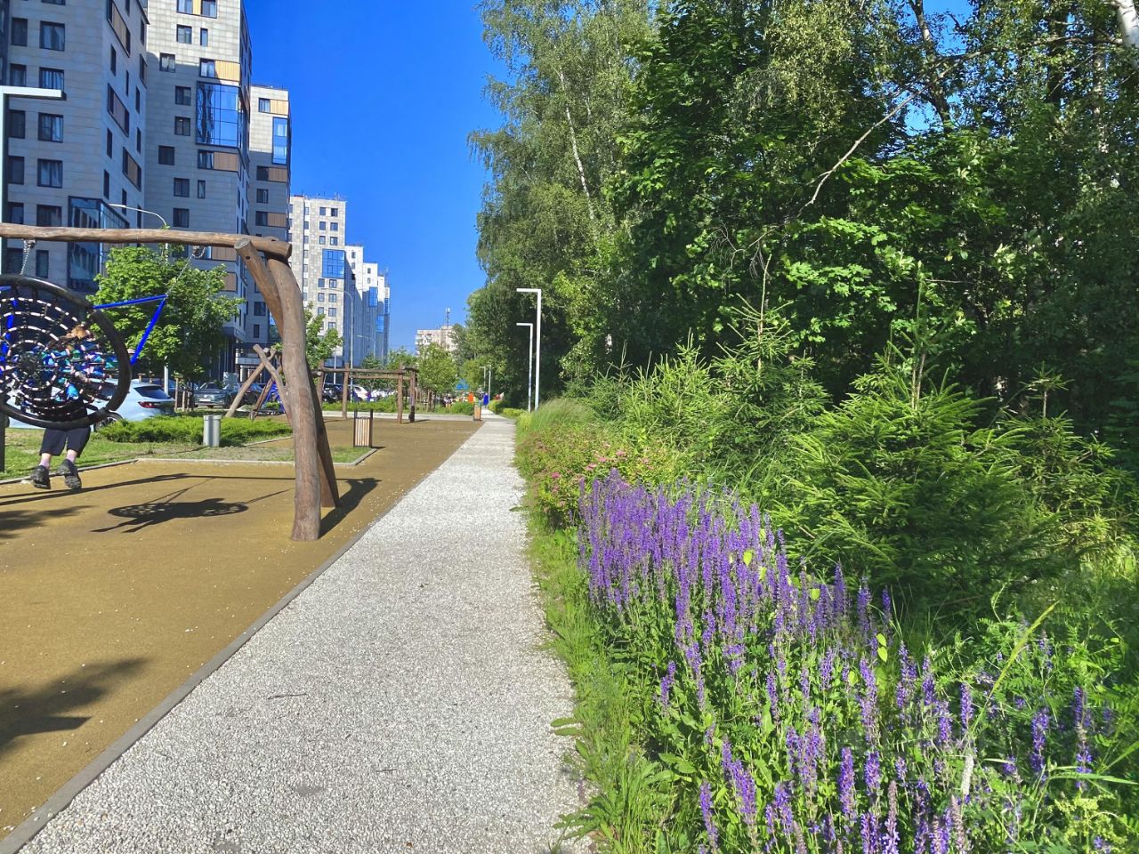 •У Zoom Черная речка приватная зеленая территория  с собственной набережной на живописном берегу Черной речки с концепцией двор без машин.