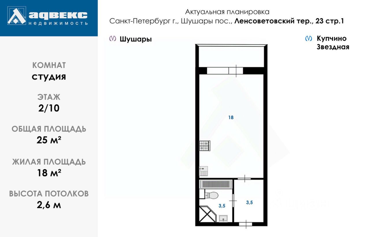 До метро "Купчино"- 20 минут на общественном транспорте, на авто 15 минут.