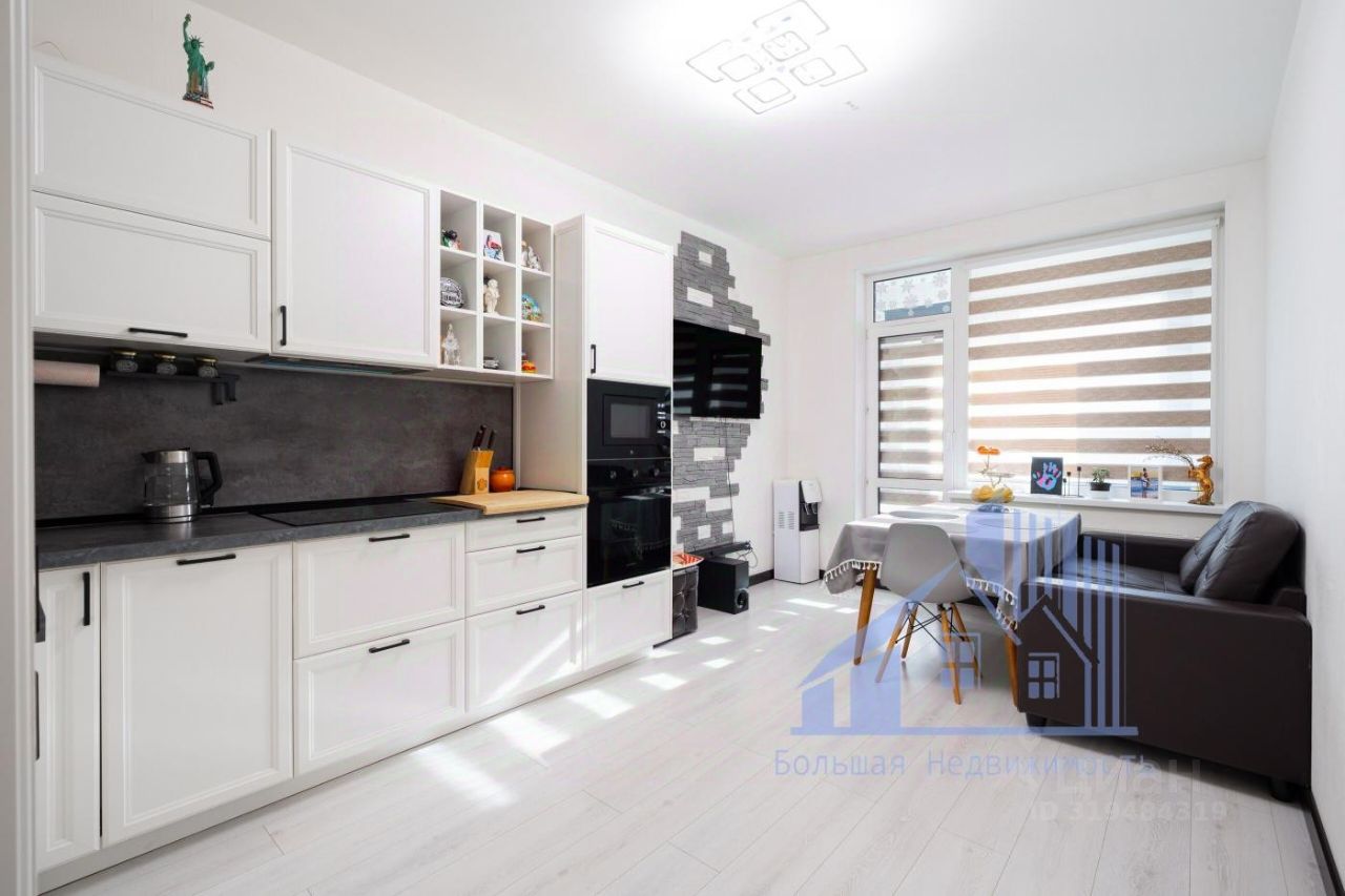 Кухня - гостиная 15.9 кв м, в светлых тонах выход с кухни на большую лоджию 7.3 кв м на кухню и комнату.