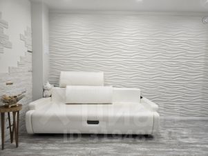- Гостиная разделена на две уютные зоны: барная стойка из натурального мрамора и огромный мягкий диван из натуральной кожи.
