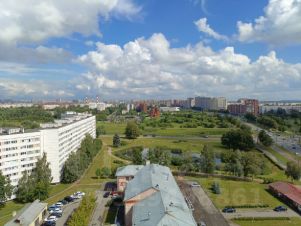 - Квартира двухсторонняя, очень светлая. Окна кухни выходят на проспект Ветеранов, а из комнаты и лоджии открывается великолепный вид на зеленый парк — идеальное место для утреннего кофе!