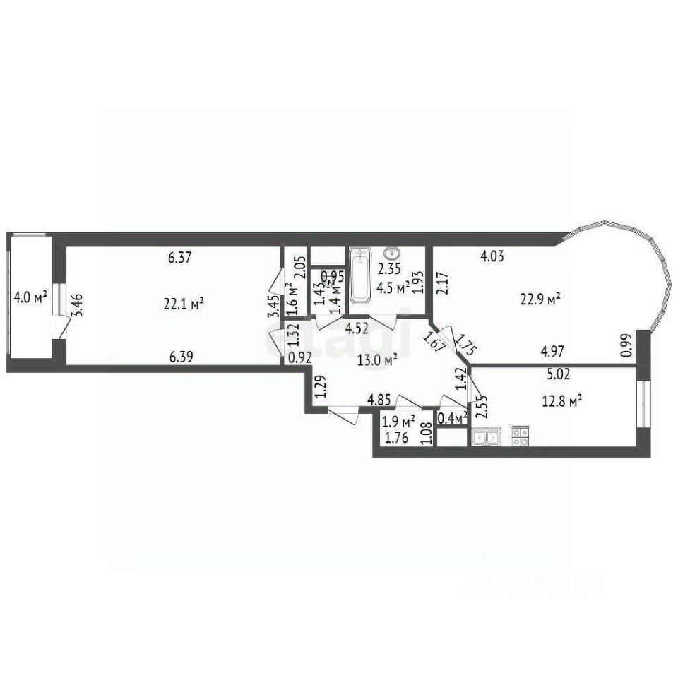 Две светлые и просторные комнаты (22,1 и 22,9 кв.м) создадут атмосферу уюта и гармонии.