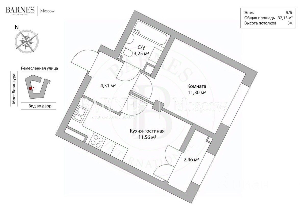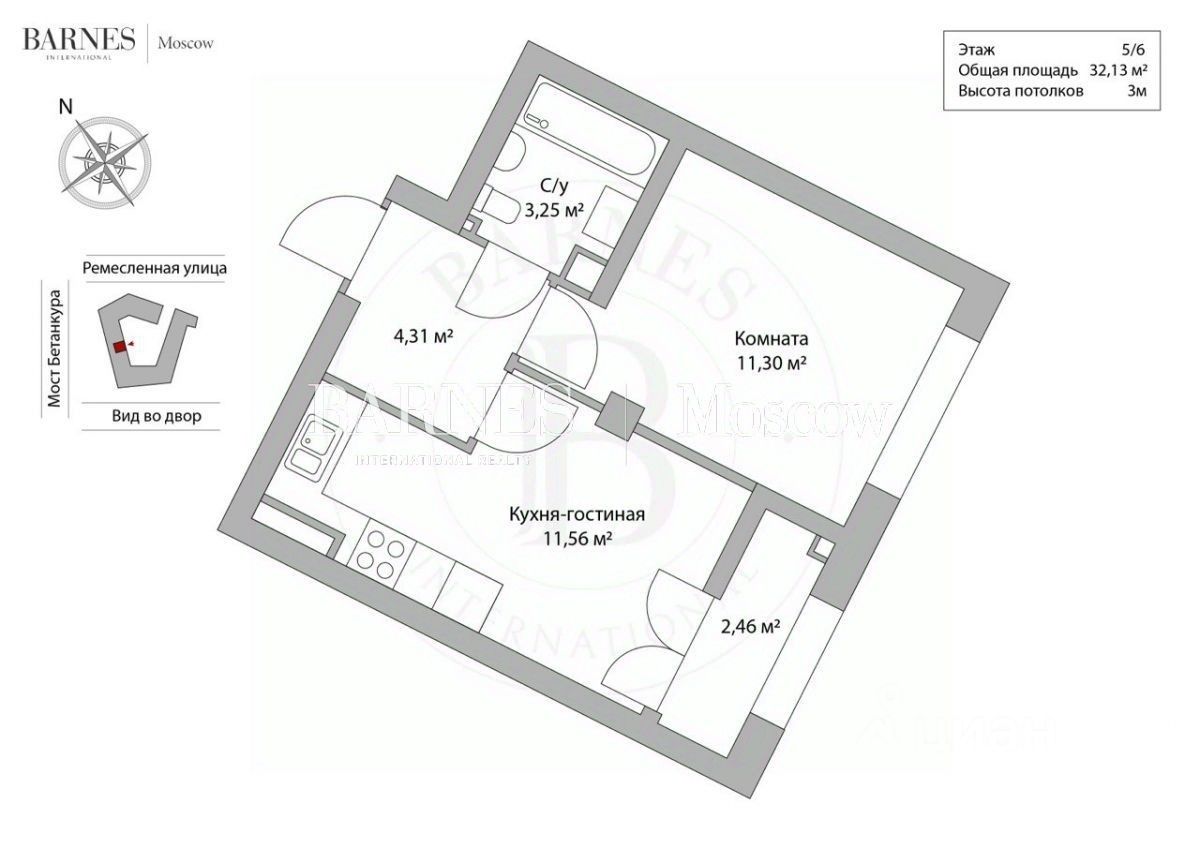* 30.6 м², 5 этаж, всего в доме 6 этажей. Вид во двор.