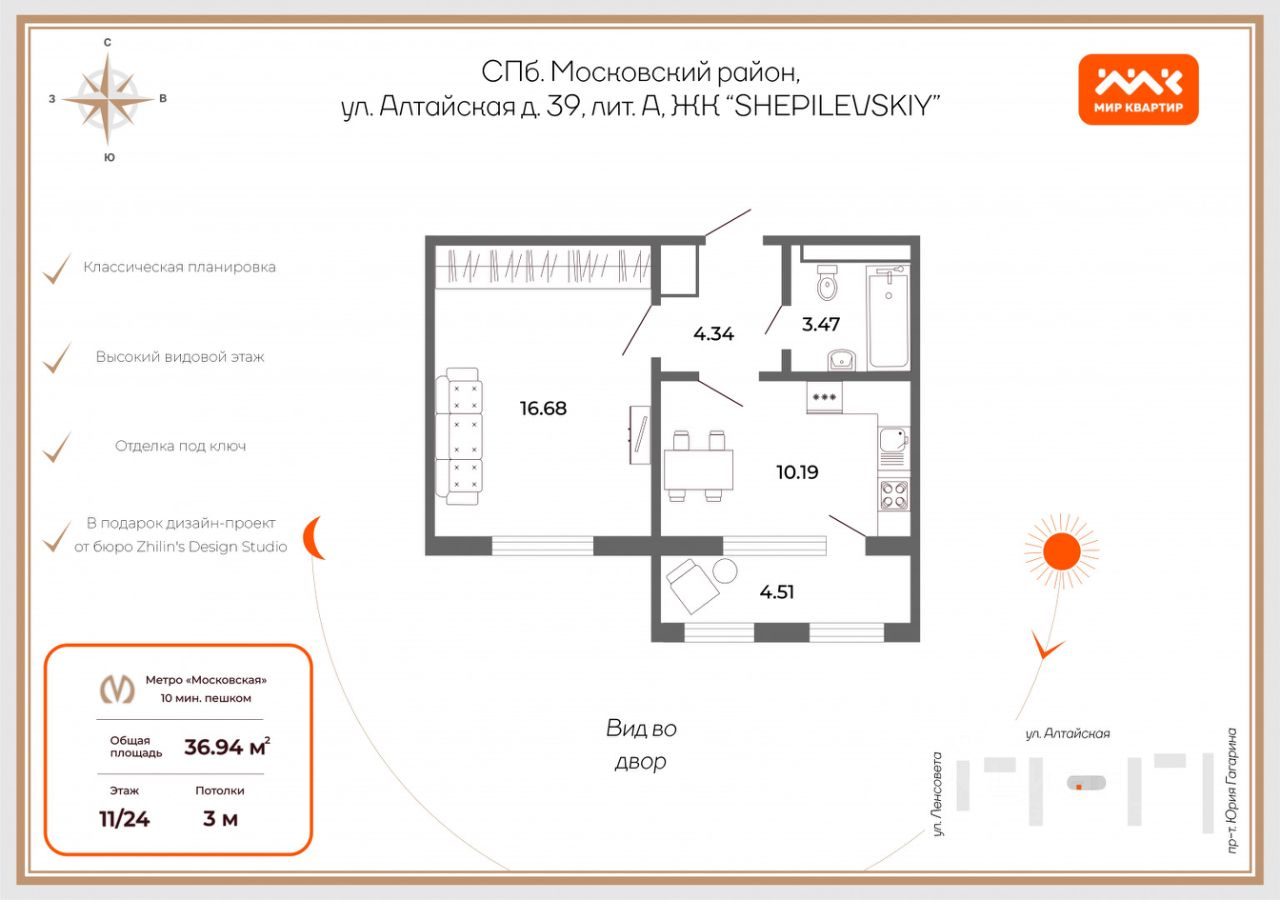 ЖК SHEPILEVSKIY - это новая доминанта локации, клубный дом на 184 квартиры и видовой террасой на высоте 72 метра. Для резидентов: закрытый зеленый двор с приватным пространством, подземный паркинг с доступом на лифте, стильное лобби и входная группа, коворкинг, кинозал, места для хранения велосипедов и самокатов, индивидуальные кладовые помещения.