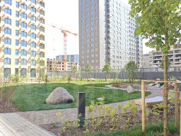 На первом этаже предусмотрены магазины, салоны красоты и другие объекты инфраструктуры. В квартале запланировано строительство детского сада на 350 мест и три многоэтажных паркинга на 900 машин с системами вентиляции и пожаротушения. Дворы жилого комплекса закрыты для машин. На территории дома размещены игровые и спортплощадки, центральный зеленый бульвар и широкие тротуары.