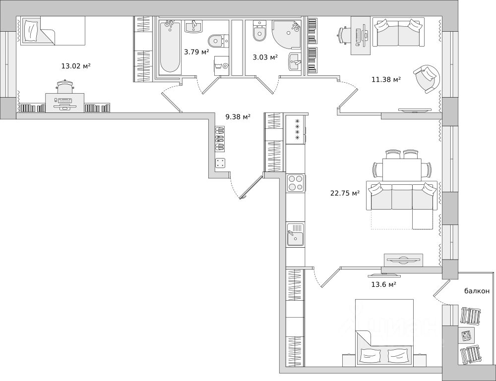 Продаётся трёхкомнатная квартира в жилом комплексе ЦДС "Новые Горизонты", участок 2, Корпус 5