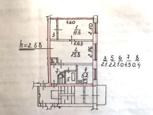 Общая площадь квартиры 42.7 м2 + балкон, кухня 5.2 м2, комнаты смежные 15.8 + 11.5 м2, санузел раздельный.