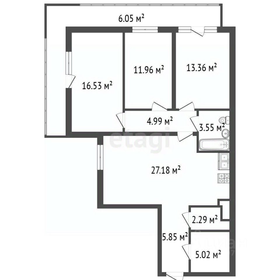 - просторная кухня-гостиная - 27,18 м2;