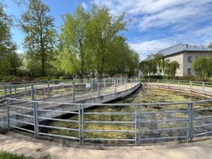 - Рядом зелёный парк с хвойными деревьями, экотропа "У Лукоморья"
