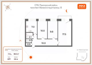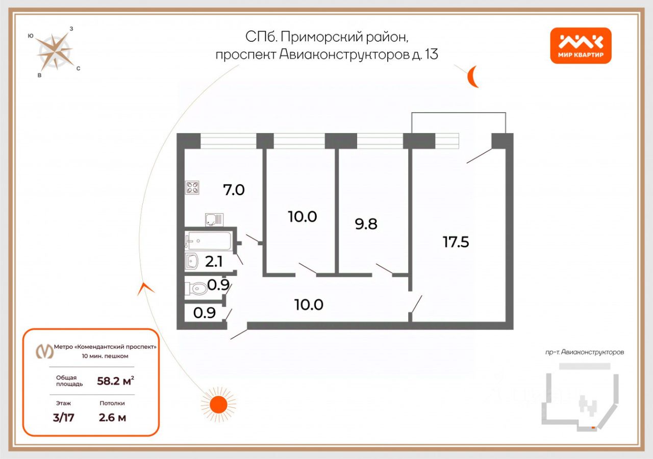 Арт. 110072553 Продается уютная эргономичная квартира в самом центре Приморского района, общей площадью 58.2 кв.м. с тремя изолированными спальнями, идеально обеспечивающими личное пространство для каждого члена семьи, просторным холлом, кухней правильной формы и большим застекленным балконом.
