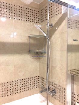 Квартира расположена на 14 этаже панельного дома, откуда открывается впечатляющий вид на башню Газпрома и стадион Зенит. Высота потолков составляет 2,7 метра, что создает ощущение пространства. Интерьер выполнен в дизайнерском стиле с качественным ремонтом, установленными дубовыми стеклопакетами с жалюзи. Санузлы оформлены с использованием чешской сантехники, имеют тропический душ и ванну с джакузи идеальное место для расслабления после трудового дня.