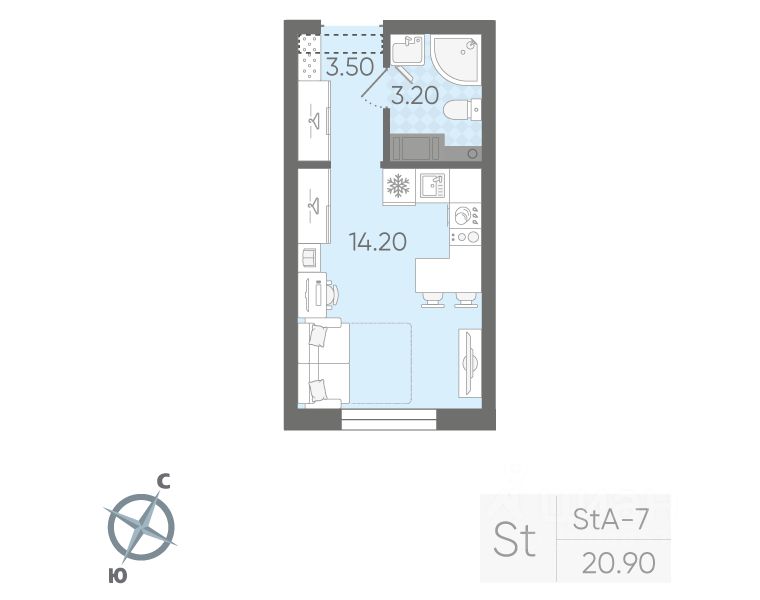 Продаётся студия в ЖК "Ручьи" на 12 этаже. Общая площадь составляет 20.90 кв. м. Квартира с чистовой отделкой. Жилой комплекс "Ручьи" располагается по адресу Санкт-Петербург, Красногвардейский.