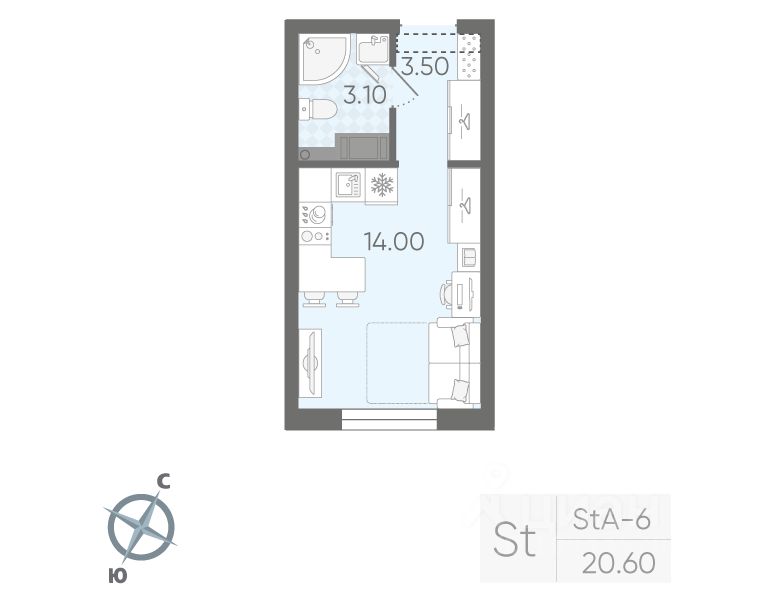 Продаётся студия в ЖК "Ручьи" на 3 этаже. Общая площадь составляет 20.60 кв. м. Квартира с чистовой отделкой. Жилой комплекс "Ручьи" располагается по адресу Санкт-Петербург, Красногвардейский.